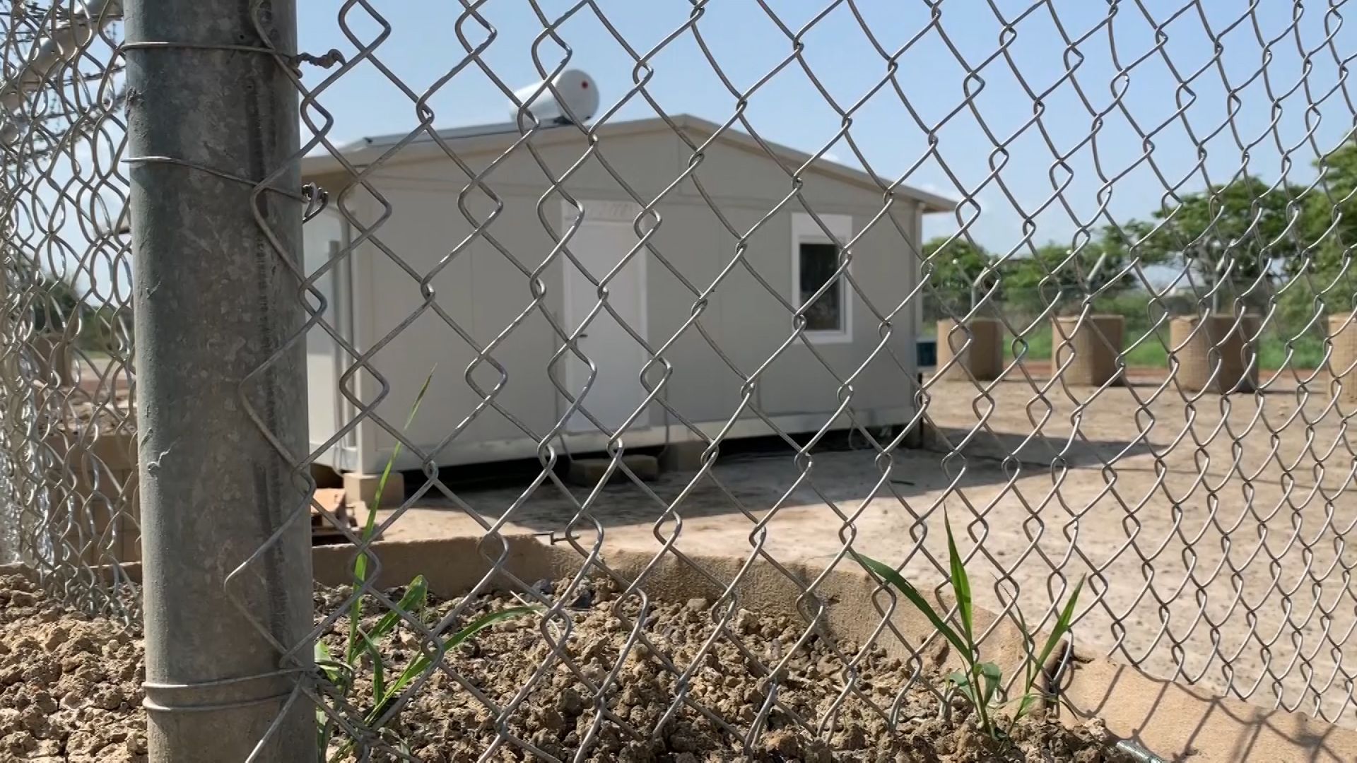 The pioneering fence construction surrounds the Ebola Holding Facility which the engineers also built.